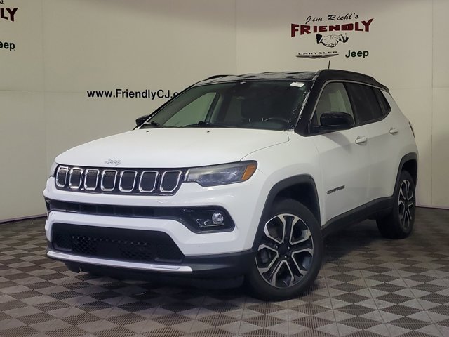 For Your Best Deal it s Jim Riehl s Friendly Auto Group. Browse our online inventory, schedule a test drive, get your trade appraised or investigate finance options. All hassle free!2022 Jeep Compass Limited Bright White Clearcoat 2.4L I4 9 Speed 948TE AutomaticCARFAX One Owner. Priced below KBB Fair Purchase Price! 9 Speed 948TE Automatic, 4WD, 10.1 Touchscreen Display, 4 Wheel Disc Brakes, ABS brakes, Air Conditioning, Anti whiplash front head restraints, Auto High beam Headlights, Automatic temperature control, Brake assist, Delay off headlights, Electronic Stability Control, Four wheel independent suspension, Front anti roll bar, Front Bucket Seats, Front dual zone A/C, Front fog lights, Fully automatic headlights, Heated front seats, Knee airbag, Leather Trimmed Bucket Seats, Low tire pressure warning, Panic alarm, ParkView Rear Back Up Camera, Power driver seat, Power steering, Power windows, Quick Order Package 2GG, Radio Uconnect 5 w/10.1 Display, Rain sensing wipers, Rear window defroster, Rear window wiper, Remote keyless entry, Security system, Speed control, Steering wheel mounted audio controls, Traction control, Variably intermittent wipers. 22/30 City/Highway MPG